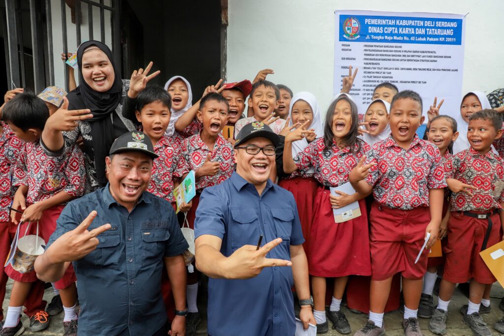 Ditempat terpisah, Bupati dan Wakil Bupati bersama rombongan juga menyempatkan diri memimpin Ground Breaking rehabilitasi toilet di 540 Sekolah Dasar dan SMP se Kabupaten Deli Serdang secara virtual yang dipusatkan di sekolah SDN 104207 desa Cinta Damai, Kecamatan Percut Sei Tuan.