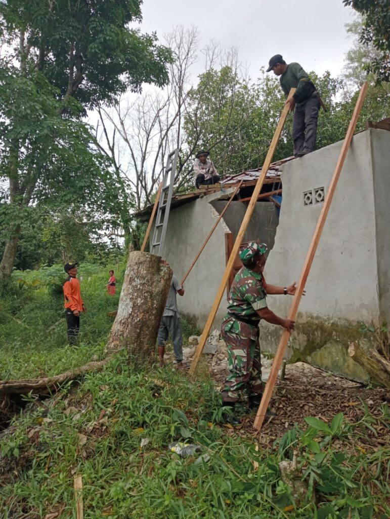 Kegiatan gotong royong tersebut dilakukan oleh Babinsa Sertu Eko Cahyono untuk membantu warga binaanya yang terkena musibah sekaligus untuk meringankan beban hidup warganya yang terkena musibah angin puting beliung.Dengan membaur bersama Lurah, Bhabinkamtibmas serta warga bergotong royong membantu yaitu dengan inisiatif swadaya dari Kelurahan untuk memperbaiki rumah yang tertimpa pohon tersebut.