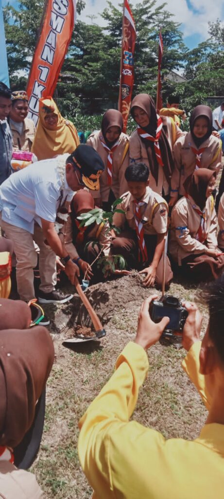 Penanaman pohon sebagai bagian dari program Adiwiyata, yang turut mendukung SMAN 1 Kumai menuju Sekolah Adiwiyata Mandiri tingkat nasional.