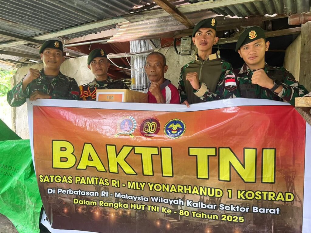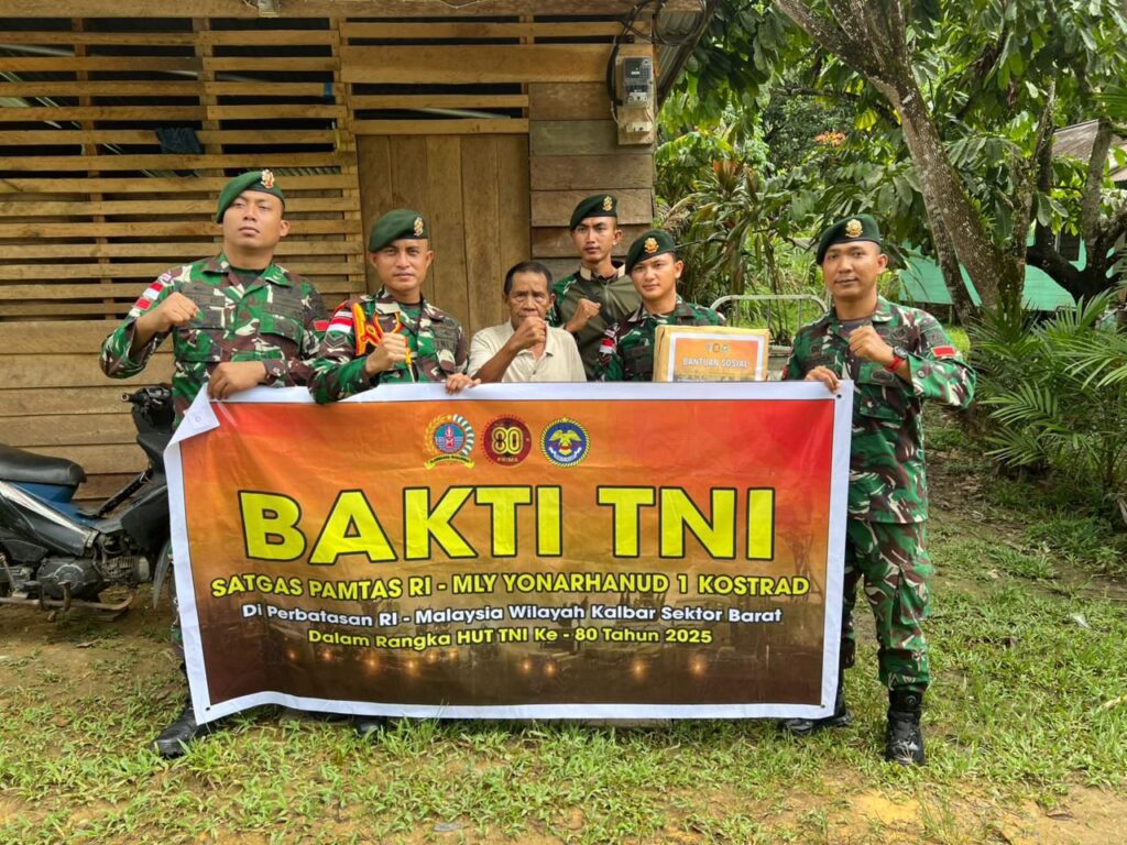 indopers.net | Kalbar – Dalam rangka memperingati Hari Ulang Tahun (HUT) ke-80 Tentara Nasional Indonesia (TNI), Satgas Pengamanan Perbatasan (Pamtas) RI-Malaysia dari Batalyon Arhanud 1/PBC/1 Kostrad melaksanakan kegiatan Bakti TNI berupa anjangsana kepada para purnawirawan TNI dan veteran di wilayah perbatasan Kalimantan Barat. (3/10/2025).