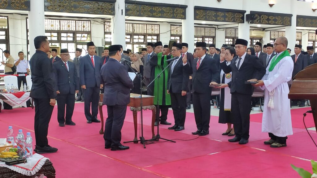 indopers.net | Kotawaringin Timur (Kalteng) – Komandan Kodim 1015/Sampit Letkol Inf Dwi Candra Setyawan hadir dalam pelantikan dan pengambilan sumpah Jabatan dilingkungan Pemerintah Kabupaten Kotawaringin Timur yang berlangsung di Gedung Serbaguna Kabupaten Kotawaringin Timur, Rabu (08/10/2025)