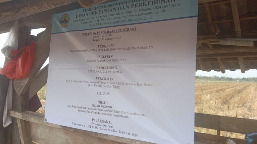 indopers.net | BREBES (JATENG) – Proyek rehabilitasi jaringan irigasi pertanian yang ada di Desa Sindangjaya, Kecamatan Kersana yang berbatasan dengan Banjar Lor mendapat sorotan. Pasalnya, proyek yang berasal dari Dinas Pertanian dan Perkebunan Provinsi Jawa Tengah itu dianggap tidak memenuhi standar spesifikasi teknis (under spek).