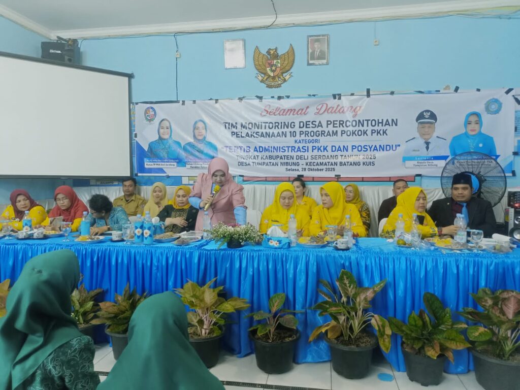 indopers.net l Deli Serdang [Sumut] – Ketua TP PKK Kabupaten Deli Serdang Ny Jelita Asri Ludin Tambunan, bersama Tim Monitoring dan Evaluasi Desa Percontohan kunjungi Desa Tumpatan Nibung, Kecamatan Batang Kuis. Selasa,(28 Oktober 2025)
