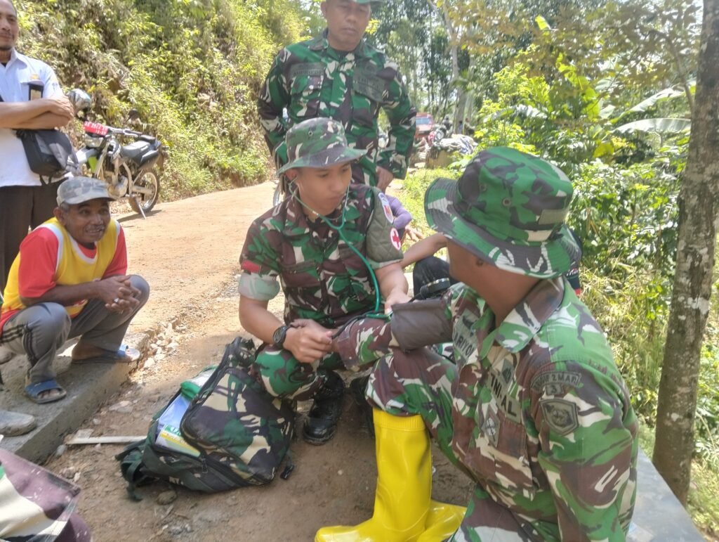 indopers.net | Pacitan (Jatim) – Tidak Hanya melayani Anggota TNI saja, Tim Kesehatan Lapangan (Keslap) Satgas TMMD 126 Kodim 0801/Pacitan juga berikan layanan kesehatan kepada warga Desa Petungsinarang, Kecamatan Bandar, Kabupaten Pacitan.