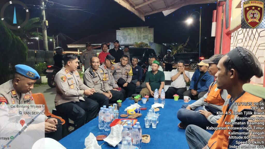 indopers.net | Sampit (Kalteng) – Kunjungan Kapolres Kotim AKBP. Resky Maulana Zulkarnain S.H., S.I.K, M.H., dan dalam rangka Sambang Pos Satkamling di Perumahan Bukit Permai RT. 17, RW. 01 Kelurahan Baamang Hulu, Kecamatan Baamang, Kabupaten Kotawaringin Timur, Jum’at malam (31/10/2025)