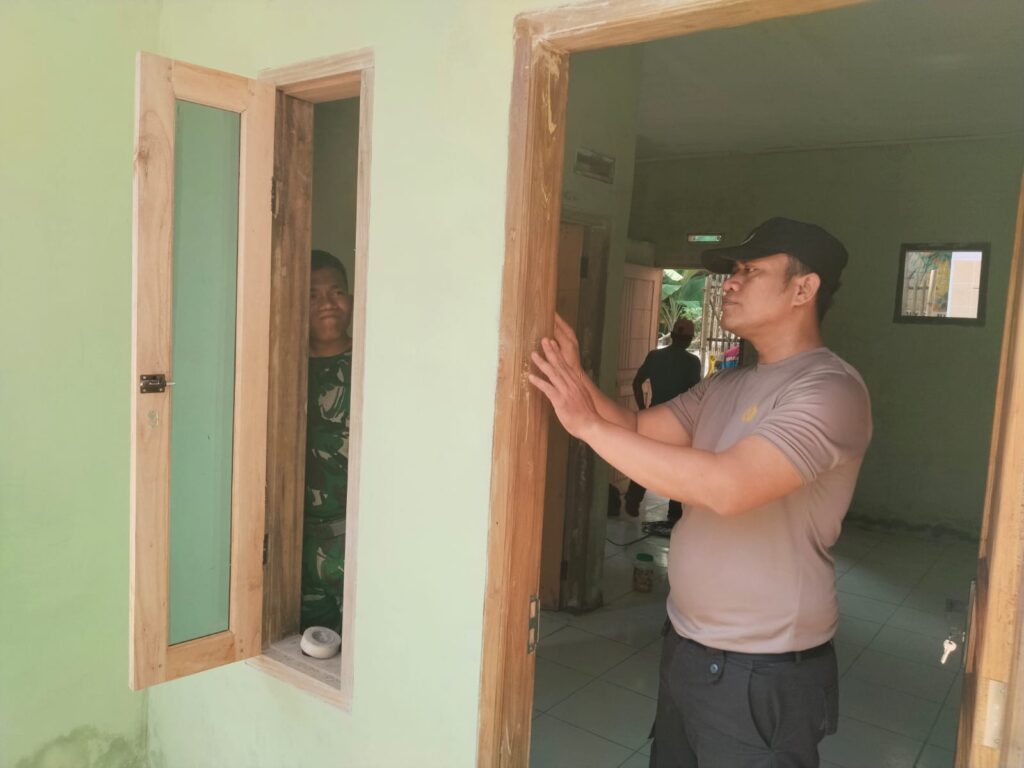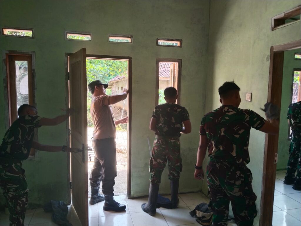 Dalam kegiatan yang berlangsung di Desa Cikeuntrung, Kecamatan Cadasari, anggota Satgas TMMD bersama personel dari Polri bahu-membahu melanjutkan pekerjaan perbaikan rumah warga. Mereka tampak kompak dan penuh semangat menyelesaikan tahap akhir berupa pemasangan kusen pintu dan jendela serta pengecekan kualitas dinding dan lantai agar rumah tersebut layak huni dan nyaman ditempati.