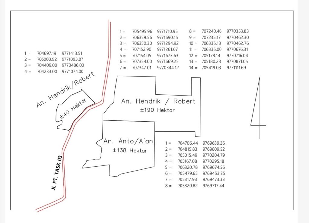 Letak kebun Hendrik alias Robert dan Anto /Aan ini berada di atas lahan yang berstatus HPK. Tepatnya di jalan PT. TASK 3 KM. 35, kebun Hendrik/Robert seluas 230 hektare, kebun pak Anto/Aan dengan luas kurang lebih 138 hektare. Total keseluruhan kedua kebun ini 368 hektare dan dipastikan tidak mengantongi ijin karena di kawasan HPK.
