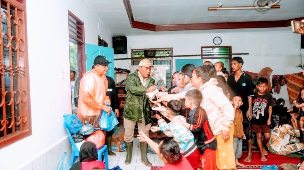 Sementara ditempat lain, Wakil Bupati Deli Serdang Lom Lom Suwondo SS langsung turun tangan keliling menyapa masyarakat memberikan arahan dan bantuan kepada warga terdampak. Desa Marindal 1, Kecamatan Patumbak. Kamis,(27/11/2025)