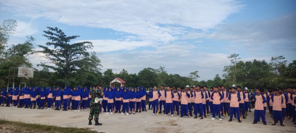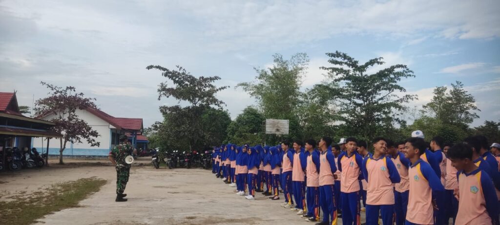 indopers.net | Sampit (Kalteng) – Babinsa Koramil 1015-01/MHS, Serda Halim Perdana Kusuma, memimpin latihan PBB bagi siswa SMAN 1 Mentaya Hilir Selatan yang dilaksanakan pada hari Jum’at, 28 November 2025.
