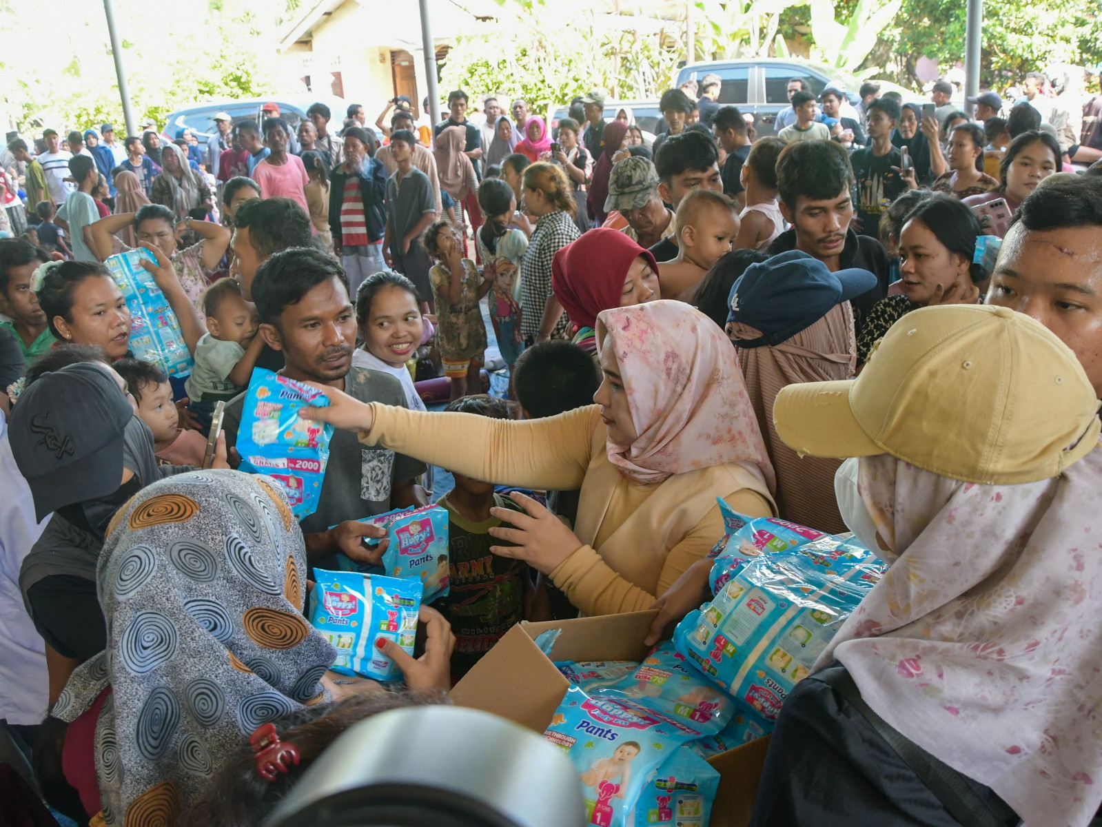 Dalam kesempatan tersebut, Ketua Tim Penggerak Pemberdayaan Kesejahteraan Keluarga (TP PKK), Ny Jelita Asri Ludin Tambunan turut menyerahkan berbagai kebutuhan dapur umum seperti gula, teh, ikan kaleng, dan roti, serta perlengkapan bayi termasuk diapers untuk membantu para ibu dan anak yang mengungsi.