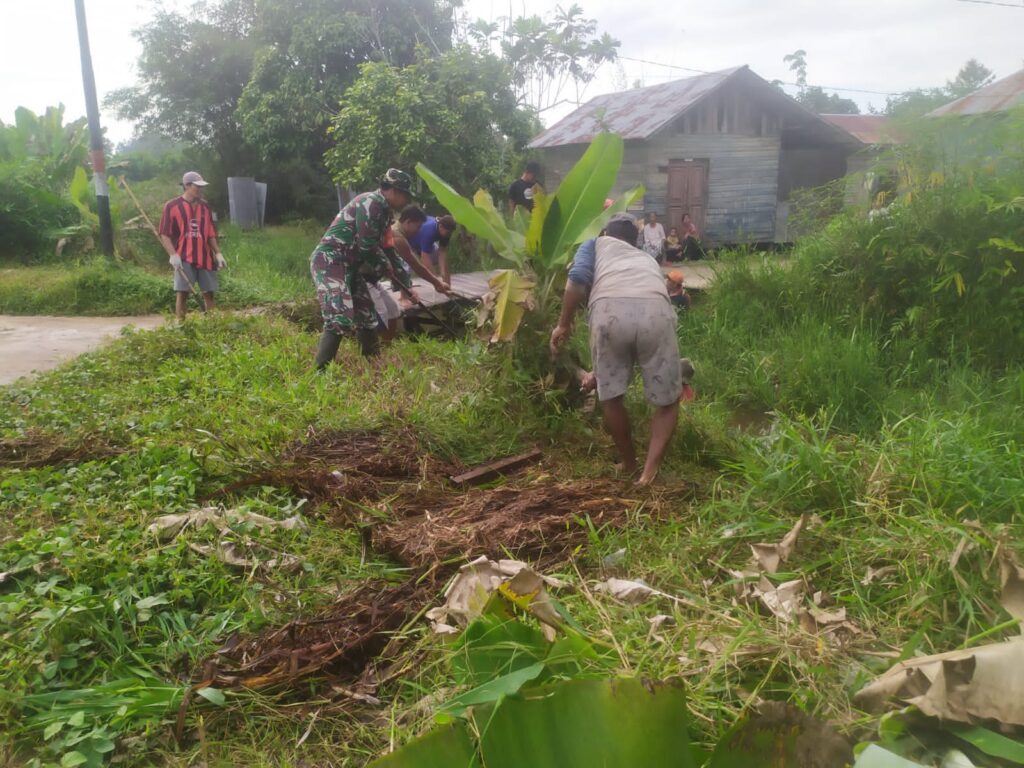 Babinsa Koramil 1015-03/Mentawa Baru Ketapang Bersama Warga Laksanakan Kerja Bakti