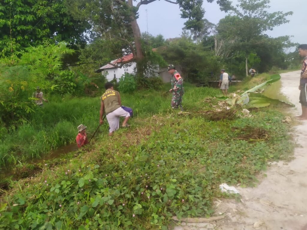 indopers.net | Kotawaringin Timur (Kalteng) – Babinsa Koramil 1015-03/Mentawa Baru ketapang Serda Ganda bersama warga melaksanakan gotong royong membersihkan semak belukar dan membersihkan parit di Kelurahan ketapang, Kecamatan Mentawa Baru Ketapang, Kabupaten Kotawaringin Timur, Minggu (30/11/2025)
