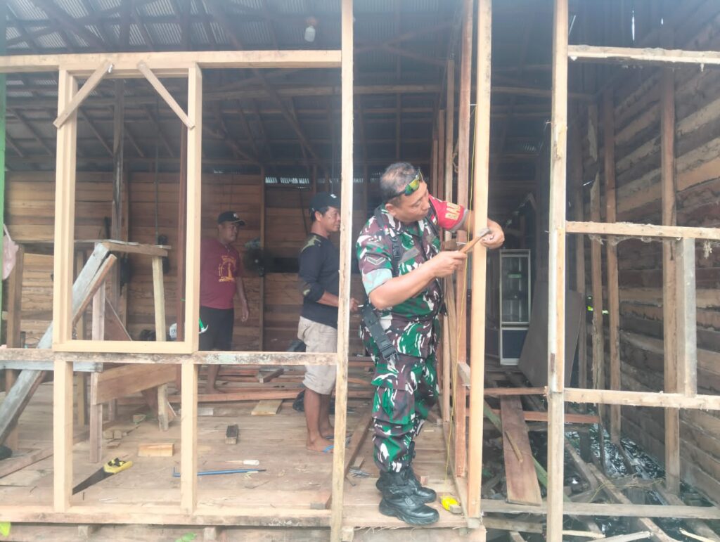 Babinsa Sertu Dedy dengan sigap terjun langsung membantu memperbaiki rumah warga yang mendapatkan bantuan program bedah rumah dari pemerintah daerah. Aksi ini dilakukan sebagai wujud kemanunggalan TNI dengan rakyat serta untuk memastikan program bantuan berjalan lancar dan tepat sasaran.