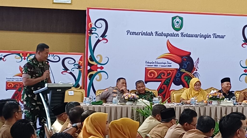indopers.net | Kotawaringin Timur (Kalteng) – Dandim 1015/Spt Letkol Inf Dwi Candra Setyawan yang diwakili oleh Pasi Ops Kodim 1015/Sampit Kapten Inf Sahidin menghadiri Kegiatan Rapat Evaluasi Akhir Tahun 2025 Kabupaten Kotim yang bertempat di Aula Rumah Jabatan Bupati Jln. A. Yani No. 17 Kec. MB. Ketapang Kab. Kotawaringin Timur, Prov. Kalimantan Tengah, Selasa (30/12/2025)