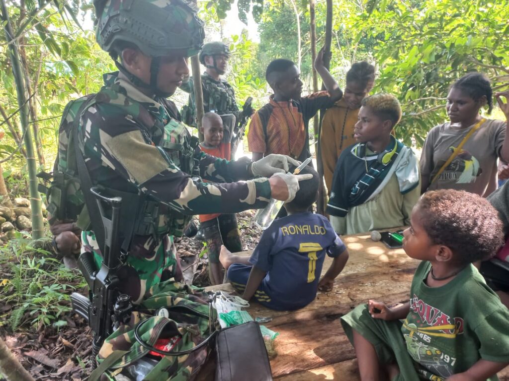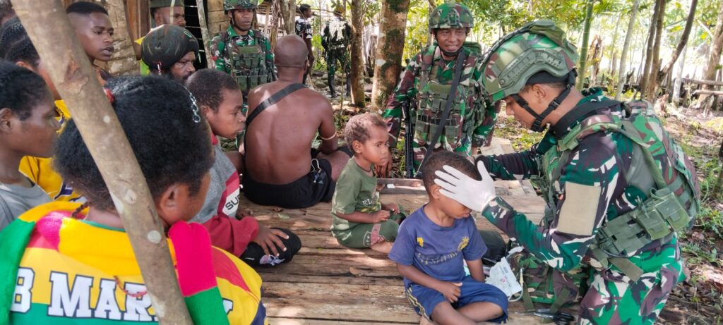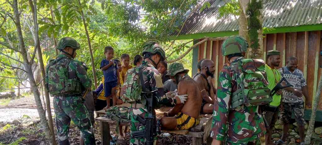 indopers.net | Kenyam/ Nduga (Papua) – Dalam rangka meningkatkan kesejahteraan serta mempererat hubungan dengan masyarakat, Personel Satgas Pamtas Mobile RI–PNG Yonif 300/Brajawijaya Pos Quary Bawah melaksanakan kegiatan patroli sekaligus anjangsana dan pelayanan kesehatan kepada warga Kampung Kolam, Distrik Kenyam, Kabupaten Nduga, Papua. Selasa (30/12/2025).