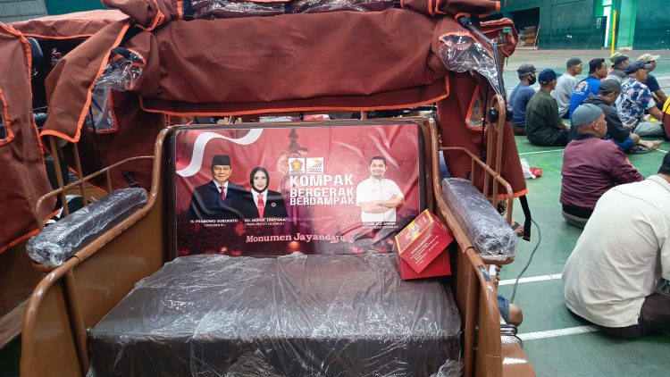 “Becak listrik yang panjenengan terima ini bukan dari anggaran pemerintah, melainkan dari dana pribadi Bapak Prabowo Subianto.