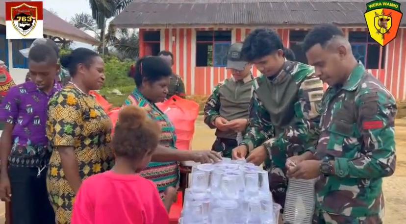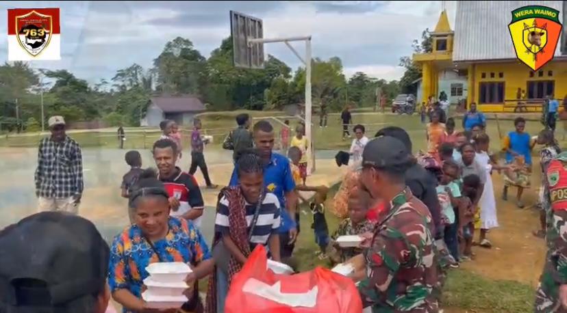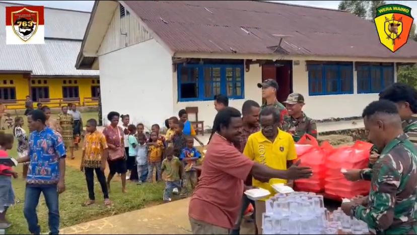Satgas Yonif 763/SBA Berbagi Kebahagiaan di Wilayah Penugasan