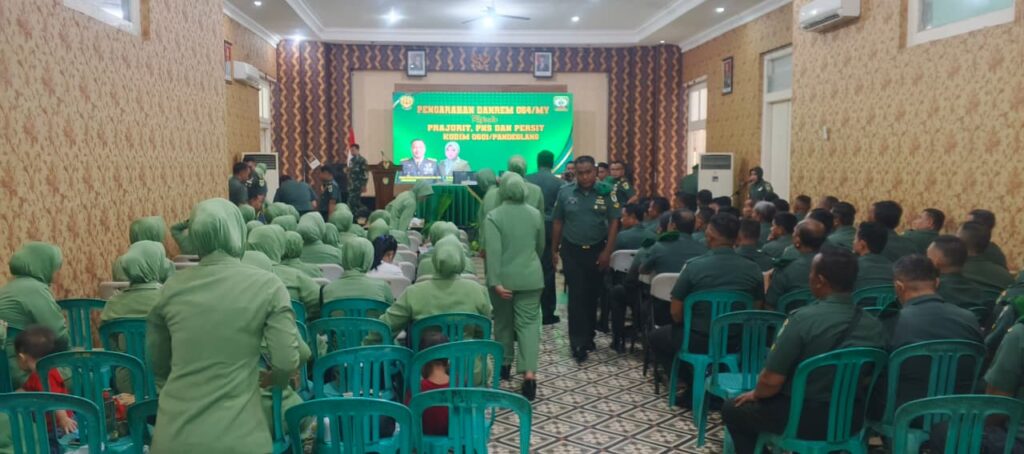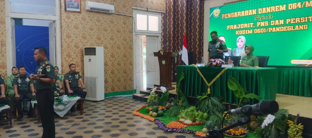 Dalam rangkaian kegiatan kunjungan kerja tersebut, Danrem 064/MY memberikan pengarahan kepada prajurit dan Persit Kodim 0601/Pandeglang, yang menekankan pentingnya menjaga disiplin, soliditas, profesionalisme prajurit, serta peran aktif TNI dalam membantu kesulitan masyarakat dan mendukung program pemerintah daerah.