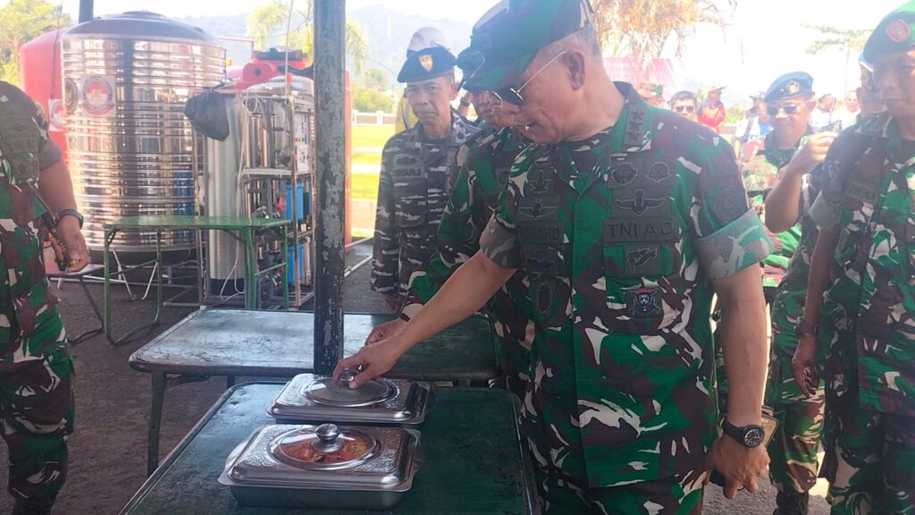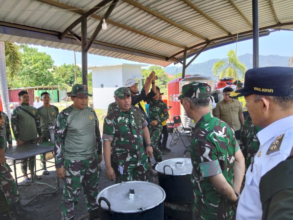 Kasum TNI beserta rombongan tiba di GOR Pandan, Kecamatan Pandan, Kabupaten Tapanuli Tengah, menggunakan helikopter dan langsung melaksanakan makan siang sekaligus meninjau dapur umum sebagai bagian dari dukungan logistik bagi masyarakat terdampak bencana.