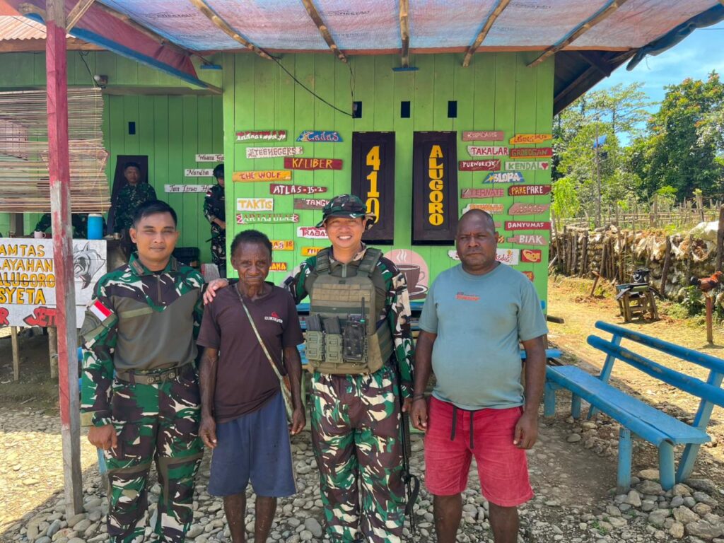 indopers.net | Masyeta (Papua) – Dansatgas Pamtas RI – PNG Kewilayahan Yonif 410/Alugoro Letkol Inf Sudarmanto Menyerahakan bingkisan kepada Kepala Kampung Meyosa Bapak Yohanes Isugaret bertempat Di Pos Masyeta. (4/2/2026).