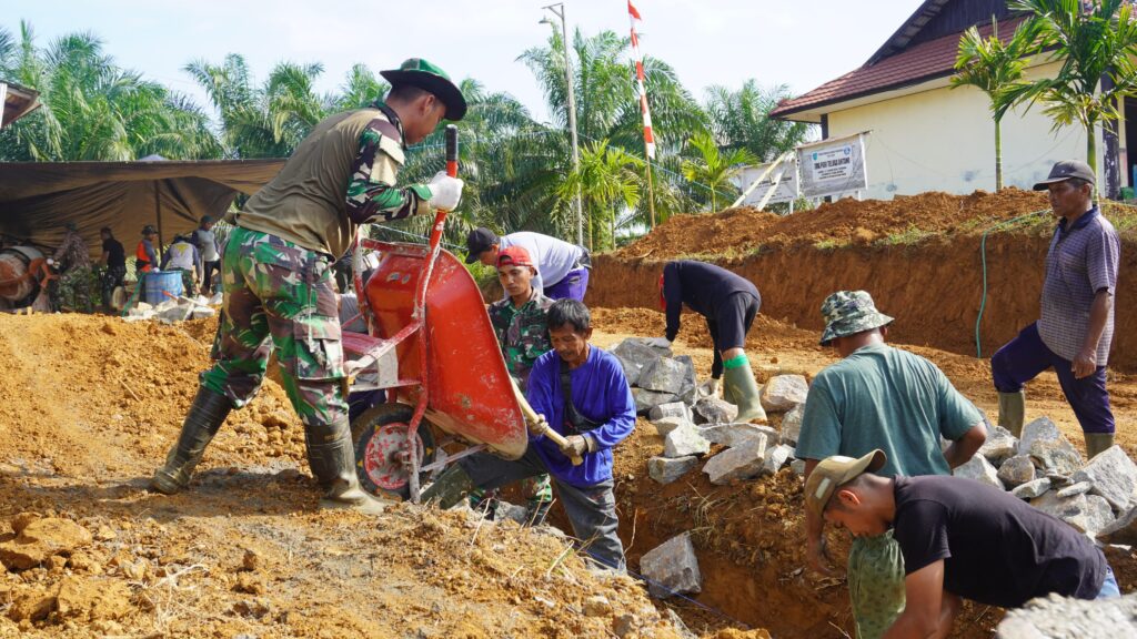 Inilah yang terlihat dari kekompakan warga dan TNI dalam pengerjaan Sasaran Fisik Satgas TMMD ke 127 Kodim 1015/Sampit