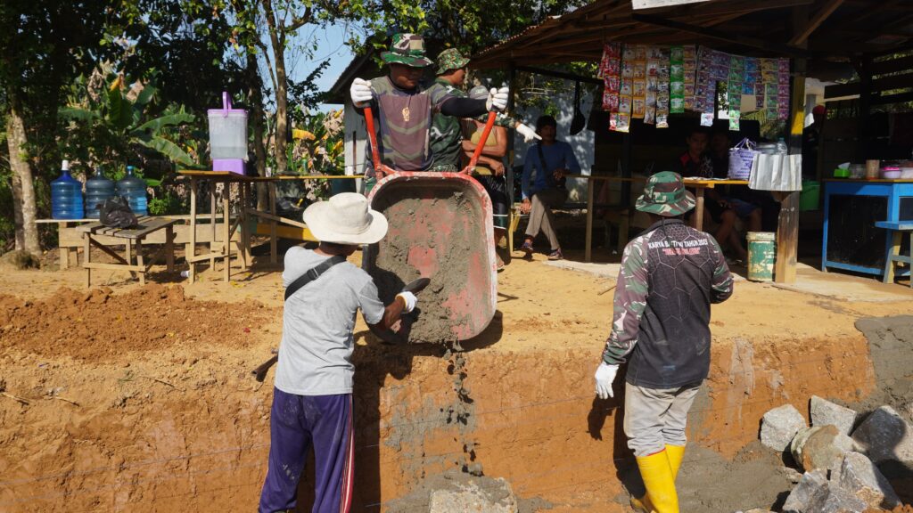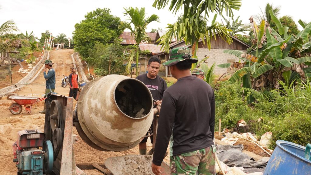 indopers.net | Kotawaringin Timur (Kalteng) – Satgas TNI Manunggal Membangun Desa (TMMD) ke-127 Kodim 1015/Sampit, sangat antusias dan tidak kenal lelah dalam mengerjakan Sasaran Fisik, salah satunya pembuatan siring kanan kiri jalan di Desa Tri Buana, Kecamatan Telaga Antang, Kabupaten Kotawaringin Timur, Kamis (12/02/2026)