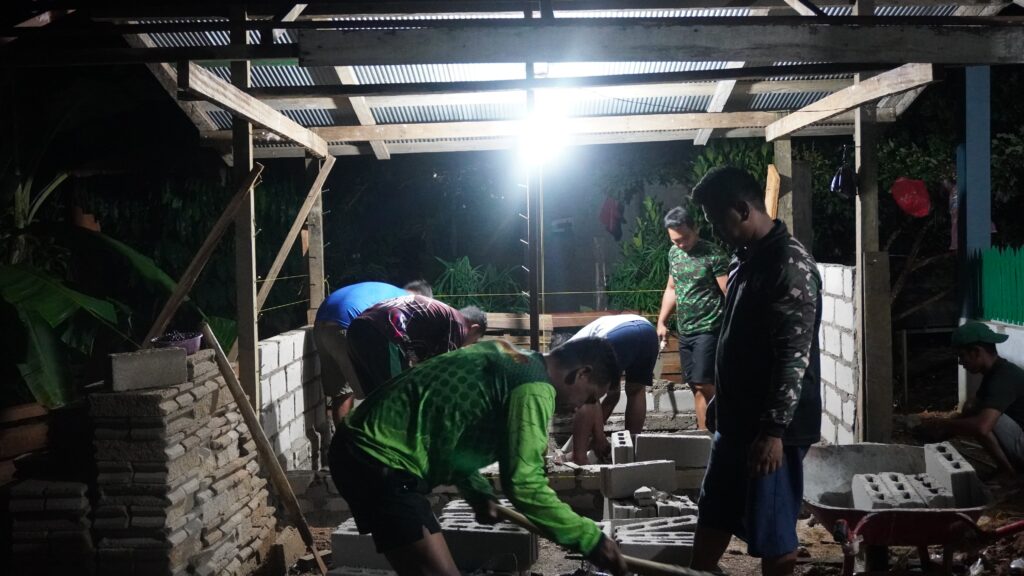 indopers.net | Kotawaringin Timur (Kalteng) – Satuan Tugas (Satgas) TNI Manunggal Membangun Desa (TMMD) ke-127 mulai pembangunan MCK dan tempat wudhu mushola Mudalil Muttakin Desa Tri Buana. Tidak hanya bekerja di siang hari, para prajurit bersama warga turun tangan hingga larut malam demi memastikan proyek ini rampung sesuai target. Jum’at malam 13/02/2026