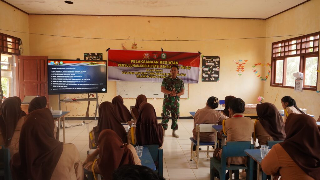 Kegiatan ini menjadi bagian penting dalam upaya memberikan pemahaman yang benar dan transparan kepada para siswa-siswi mengenai proses penerimaan prajurit TNI AD. Dalam sosialisasi tersebut, personel Satgas TMMD menjelaskan secara rinci persyaratan umum, tahapan seleksi, hingga komitmen yang harus dimiliki oleh calon prajurit TNI AD. Para siswa tampak antusias mengikuti kegiatan yang berlangsung interaktif tersebut.