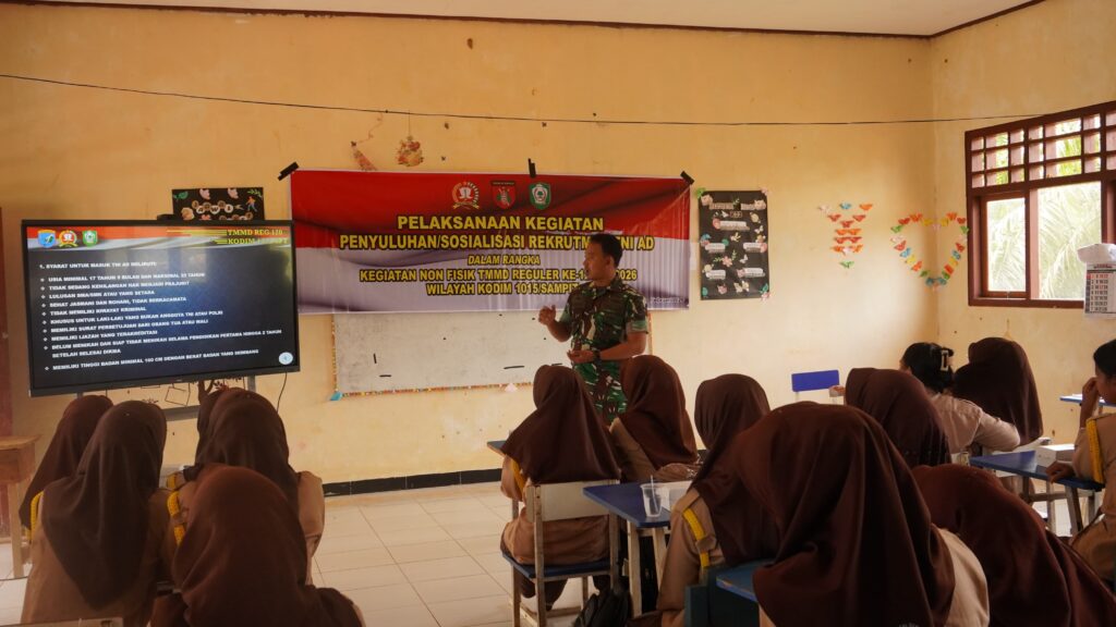 indopers.net | Kotawaringin Timur (Kalteng) – Program TNI Manunggal Membangun Desa (TMMD) Ke-127 yang dilaksanakan oleh Kodim 1015/Sampit tidak hanya fokus pada pembangunan fisik, namun juga menyentuh aspek non fisik melalui pembinaan generasi muda. Satgas TMMD Ke-127 melaksanakan kegiatan sosialisasi rekrutmen TNI Angkatan Darat di SMA Swasta PGRI Telaga Antang, Desa Tri Buana, Kecamatan Telaga Antang, Kabupaten Kotawaringin Timur. Sabtu, (14/02/2026)