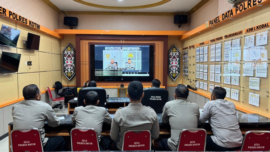 indopers.net | Sampit (Kalteng) – Polres Kotawaringin Timur (Kotim) mengikuti rapat Analisisa dan Evaluasi (Anev) Ketahanan Pangan yang diselenggarakan Mabes Polri via zoom meeting, Rapat ini dipimpin oleh AS SDM Polri, diikuti Polres Kotim dipimpin oleh Waka Polres Kotim Kompol Christian Maruli Tua Siregar, S.I.K., M.M., mewakili Kapolres Kotim, didampingi oleh Kabag SDM AKP Lindawati, S.H., Kasubbagwatpers, dan operator ketahanan pangan via zoom diaula loby Polres Kotim, pada Kamis pagi (19/02/2026).