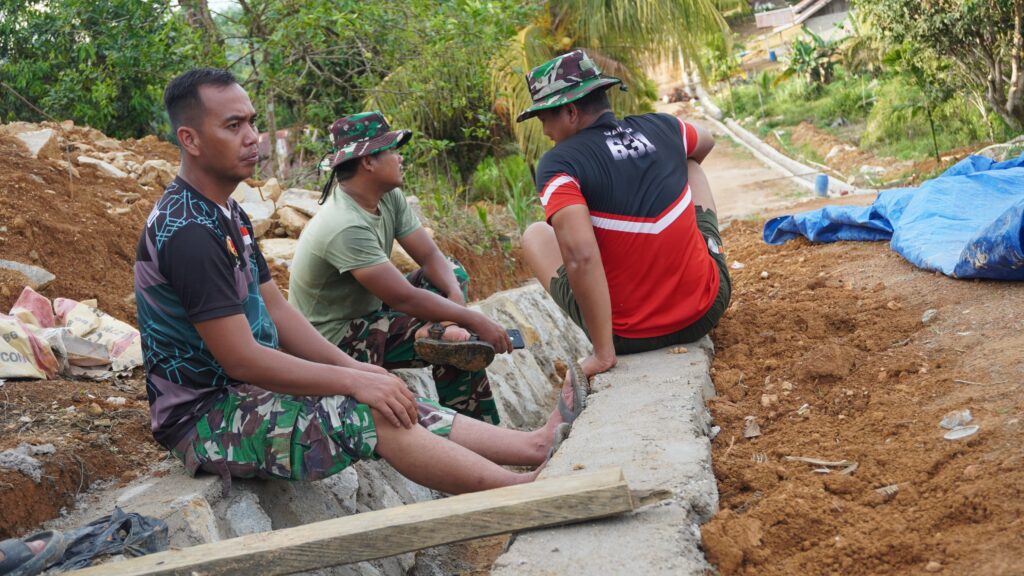 Meskipun menjalankan tugas berat di lapangan, personel Satgas tetap menjaga interaksi dengan masyarakat. Kegiatan komunikasi sosial ini menjadi bagian dari upaya mempererat hubungan antara TNI dan rakyat, sejalan dengan semangat gotong royong yang menjadi dasar program TMMD.