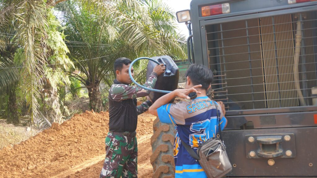 indopers.net | Kotawaringin Timur (Kalteng) – Guna mendukung kelancaran alat berat penimbunan jalan dengan panjang 1.734 meter didesa Bukit Indah, Kecamatan Telaga Antang, Kabupaten Kotawaringin Timur, Satgas TMMD ke 127 membantu operator mengisi BBM alat berat, Sabtu (21/02/2026).