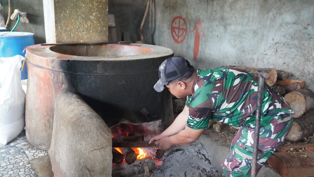 Anggota Satgas TMMD Reguler ke-127, Laksanakan Komsos Bersama Pembuat Tahu
