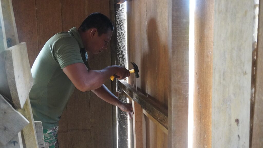 indopers.net | Kotawaringin Timur (Kalteng) – Satgas TNI Manunggal Membangun Desa (TMMD) ke-127 Kodim 1015/Sampit menunjukan pengabdian yang luar biasa. Meski di hari libur, personel Satgas tetap antusias melanjutkan pengerjaan program Rehab Rumah Tidak Layak Huni (RTLH) milik salah satu warga di Desa Tri Buana, Kecamatan Telaga Antang, Kota Kotawaringin Timur, Minggu (22/02/2026).