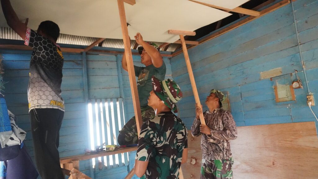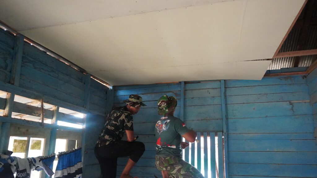 Anggota Satgas TMMD Kodim 1015/Sampit, Tahap Pemasangan Plafon Rumah Bapak Yayan
