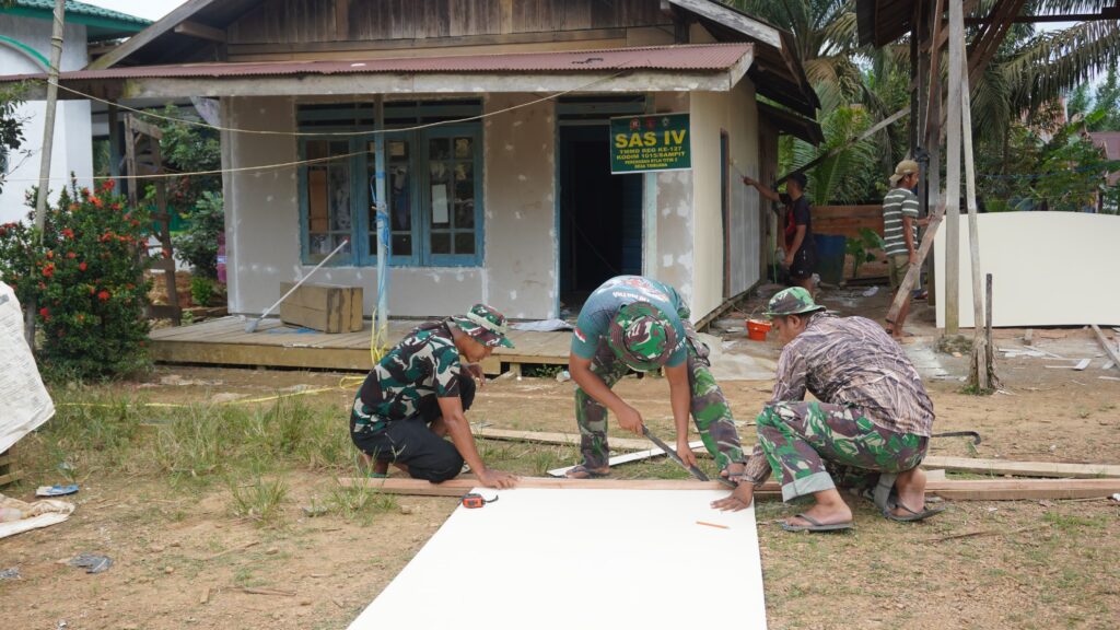 indopers.net | Kotawaringin Timur (Kalteng) – Pelaksanaan Program TNI Manunggal Membangun Desa (TMMD) ke-127 yang dilaksanakan oleh Kodim 1015/Sampit yang menjadi sasaran utama terus dikerjakan. Seperti yang dilakukan oleh Satgas TMMD Kodim 1015/Sampit sudah memasuki pemasangan plafon di rumah milik Bapak Yayan yang merupakan sasaran ke 2 RTLH bertempat di Desa Tri Buana, Kecamatan Telaga Antang, Kabupaten Kotawaringin Timur, Rabu (25/02/2026).