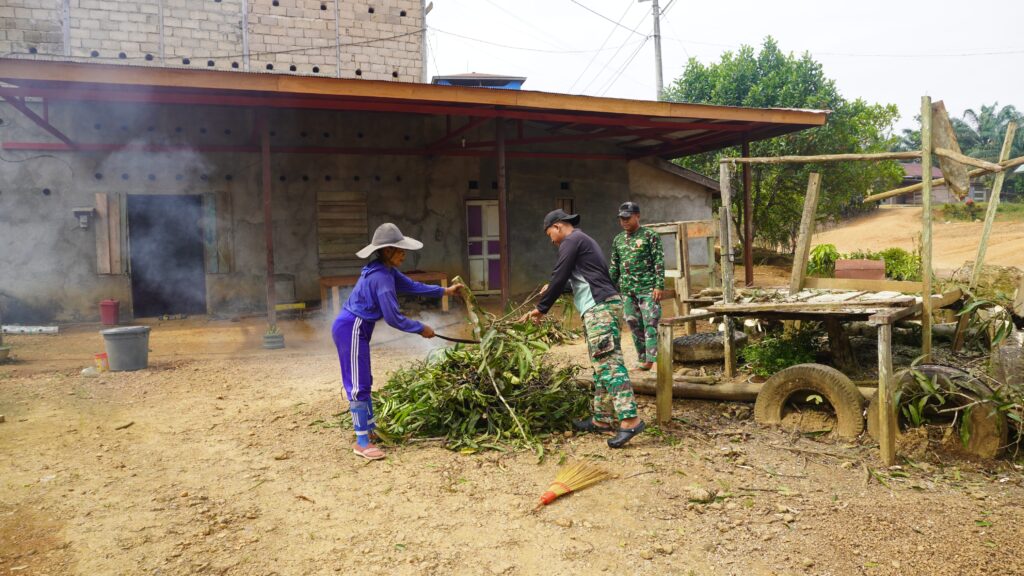 Satgas TMMD Reguler ke-127 Kodim 1015/Sampit Tak segan Batu orang Tua Asuh Membersikan Halaman Rumah
