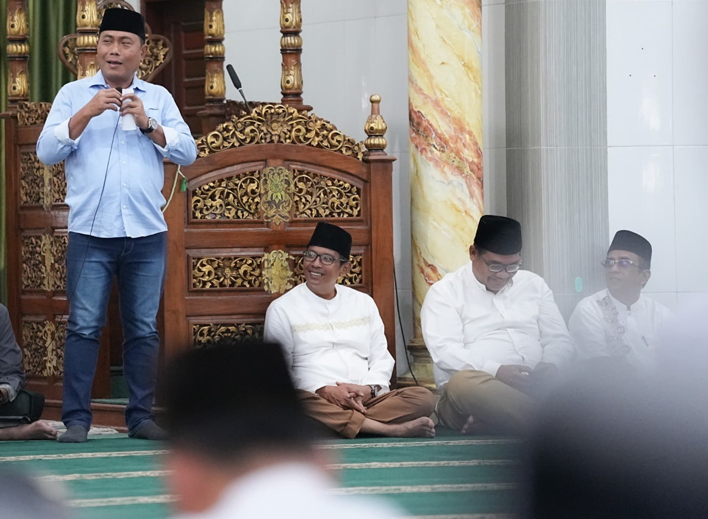 Pada kesempatan tersebut, Wabup turut menyerahkan bantuan, berupa dua unit kursi roda, Al-Qur’an, 30 kotak bubuk teh, 10 kilogram gula, dua gulung karpet masjid, 30 kaleng susu, serta santunan kepada kaum duafa.