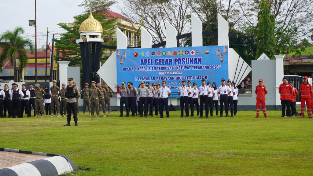 Apel Gelar Pasukan Operasi Ketupat Telabang 2026 ini dilaksanakan untuk memastikan kesiapan seluruh personel dan sarana prasarana serta memperkuat sinergitas lintas sektor dalam memberikan pelayanan dan pengamanan kepada masyarakat selama momentum mudik dan perayaan Idul Fitri.