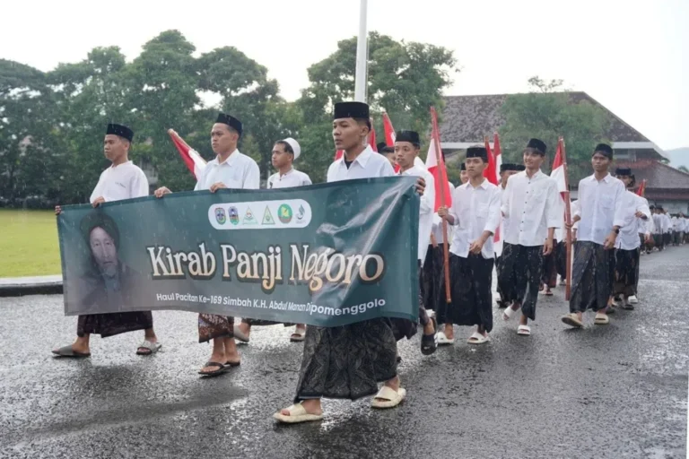 Dalam Rangka Haul Pacitan ke-169 KH Abdul Manan Dipomenggolo, Ribuan Santri Ikuti Kirab Panji Negoro.