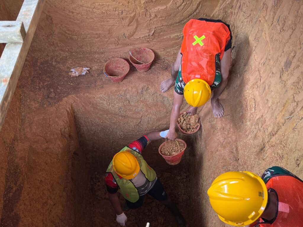 Personel Kodim 1015/Sampit Kebut Penggalian Lubang Cakar Ayam Jembatan Garuda