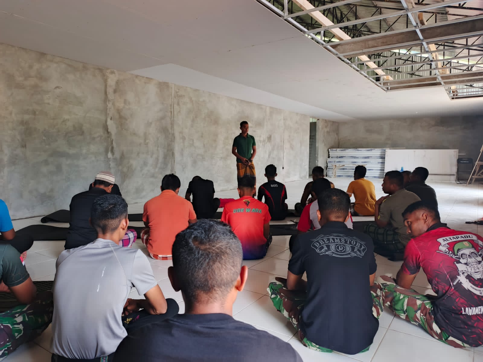 Hal itu terlihat saat anggota Satgas TMMD yang beragama islam melaksanakan Sholat Jumat di salah satu bangunan di Kampung Tanah Rubuh, Distrik Manokwari Utara, Kabupaten Manokwari. Jumat, (24/04/2026).