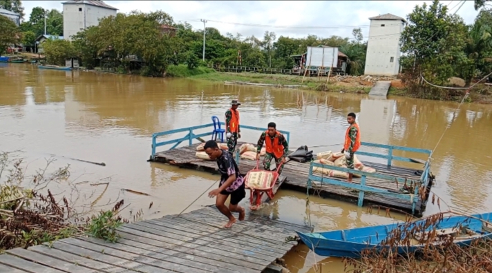 Saat ini, progres pembangunan jembatan terus berlangsung pendistribusi material ke lokasi pekerjaan.
